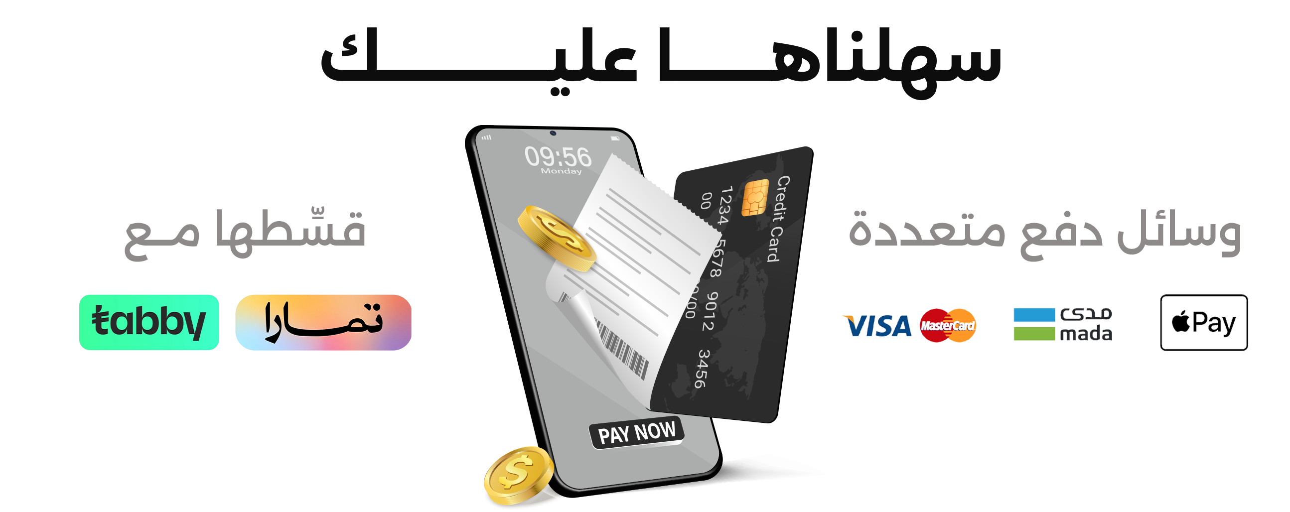 يمكنك الدفع عن طريق بطاقات مدى، فيزا، ماستركارد، أو المحافظ الإلكترونية مثل Google Pay وApple Pay. كما نوفر خيار الدفع بالتقسيط عبر تمارا وتابي.